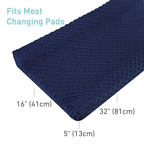 Details: Babebay always cares about the baby's feelings, we try our best to provide baby the softest environment. Babebay changing pad covers, that's exactly what you need! Ultra Soft & Breathable Short Velvet Material Ensures your baby feel comfortable all night long and skin-friendly material can protect your baby to stay away from rashes, irritation or any discomfort. Minky Dots Design for Unisex Changing table cover suit has two colors: Royal Blue & Light Grey. Minky Dots Design is available for baby boys and baby girls Premium Elastic Changing table covers have premium elastic bottom, which keeps the changing pad cover in place and smooth fit the changing pad, twice stitch reinforced for durability. Machine Washable Hand washing and machine washing are available. Hold up great when washing with no fading. Recommend to wash the changing pad cover separately, in case other clothing stained with baby excreta. Product Size Up to- Long: 32" (81cm) Wide: 16" (41cm) High: 5" (13cm) Fits most baby changing pads, bassinet mattress and cradle mattress on the market. Package Included: 2 Minky Dot Changing Pad Covers