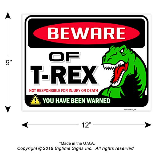 - Perfect Size: 9-inch x 12 inch Sign is great for any use! Exclusive Beware of the TRex - Not Responsible for Injury or Death - You Have Been Warned Beware Dino Sign Design is perfect for your home & office decoration… Also makes a unique gift!