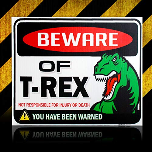 - Do You Have A "Cute & Cuddly" Tyrannosaurus Rex? Then this Beware of T-Rex - Not Responsible for Injury or Death - You Have Been Warned Dinosaur Sign is for You! Or Do You Know Someone With a T Rex Who's Not Super Friendly? Makes great serious or gag gifts for... EVERYONE! Safety Sign is large enough to warn any unsuspecting victim!
