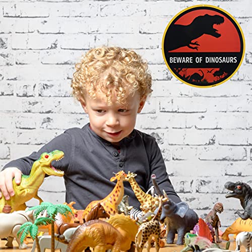 - 🦖 GREAT GIFT 🦖 Any dinosaur lover will love this sign! Perfect novelty gift for all occasions. Goes well with cage, decals, decoration, goodie, boxes, cutouts, vintage blue flag, decorative patch, clock giant tooth excavation, pillow, big logo, book, plaque, retro painting, stone, frame merchandise, tiny eggs, cardboard cutout, mask, t-rex jaw, for great pictures!
