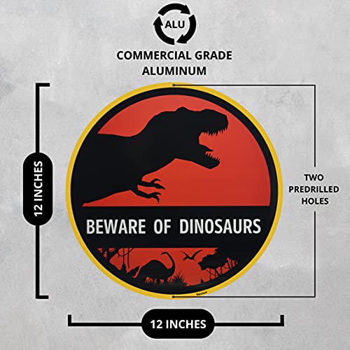 Beware of Dinosaurs Sign on Aluminum - 12 x 12 Inches
