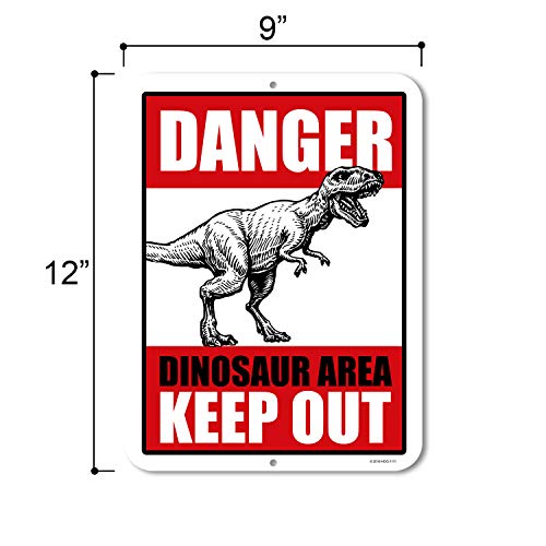 Danger Dinosaur Area Keep Out, 9 x 12 inch Metal Aluminum Novelty Dinosaur Sign