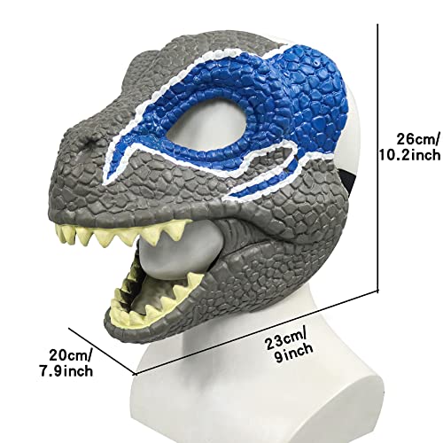 - 🦖【Feature】: Join the dinosaur family!!! 1:1 restore the velociraptor and tyrannosaurus in movies,has a realistic teeth and unique blue and gray texture.Which makes you be a real dinosaur.