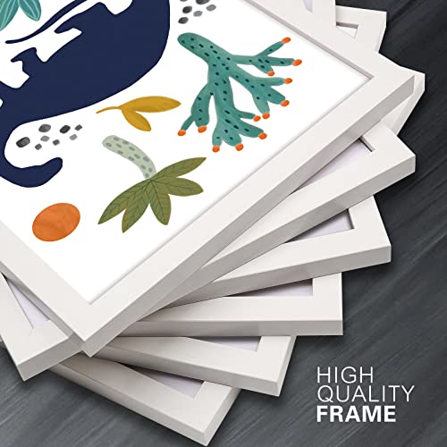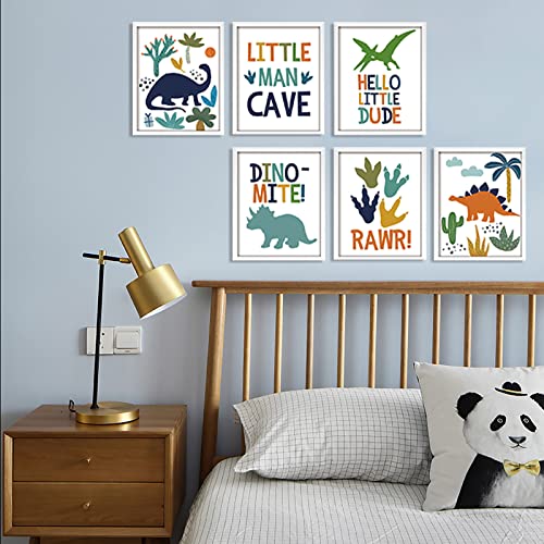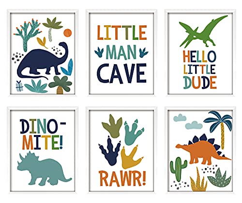 - 【Original Design】Your room has gone to the dinosaurs! Framed Dinosaurs Watercolor are made of a thick paper construction and feature six different designs of dinosaurs inside white frames. Each one showcases the adorable and colorful dinosaurs. Use nails or staples to attach them to playroom or nursery focal points.