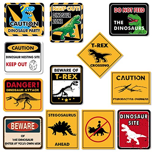 - ⚠ 【PACKAGE INCLUDES】 - 12pcs warning signs with different dino patterns will surprise every kid. Really a big package for party decorations.