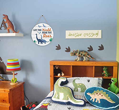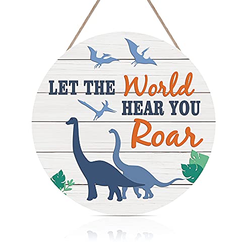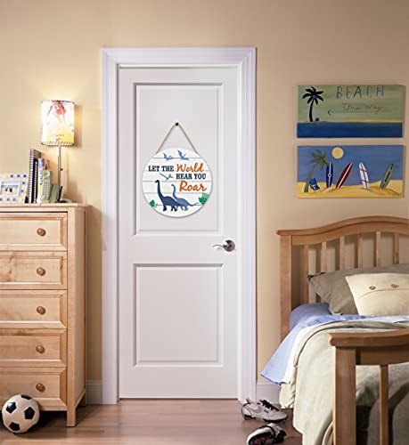 - 🦕Why Choose Our Dinosaur Door Sign Hanging?——With a simple wooden board as the background, it is marked with dinosaur and inspirational quote (Let The World Hear You Roar), which can be hung on the kids room door or wall and give you a positive and comfortable space