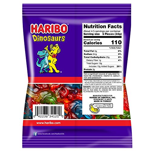 Details: From the makers of America's #1 Selling Gummi Bear, say hello to HARIBO Dinosaurs. These gummies are multi-colored dinosaur shapes. A blast from the past! Kids and grown-ups love it so, the happy world of HARIBO