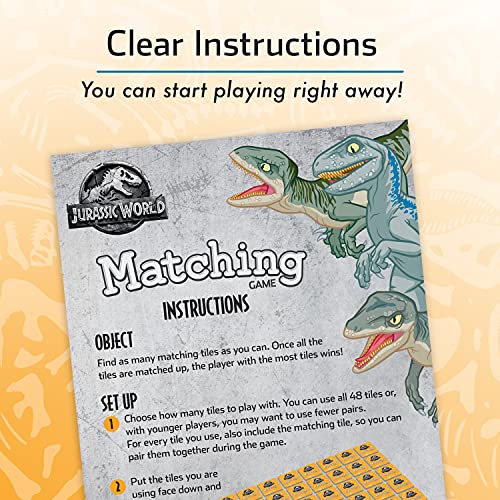 - What you get – Jurassic world matching game comes with 48 tiles and instructions.